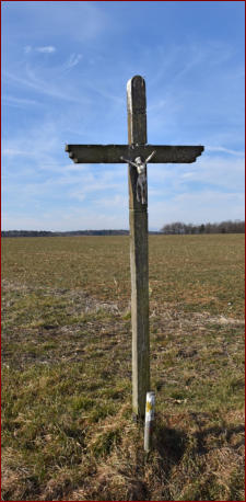 Stück nach Norden, um in der alten Richtung nach Zemling weiterzugehen. Erstmals ist das Kreuz an diesem Weg auf der Franzisko-