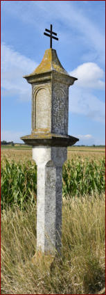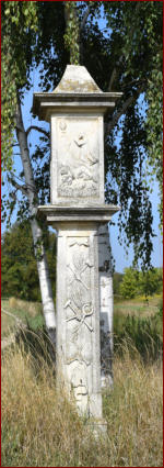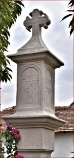 Vollblockpfeiler, oben Steinpyramide mit Steinkreuz